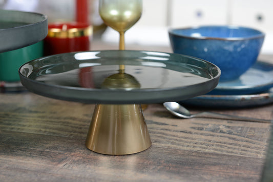 GRÜNES TABLETT AUF GOLDENEM FUSS 28CM