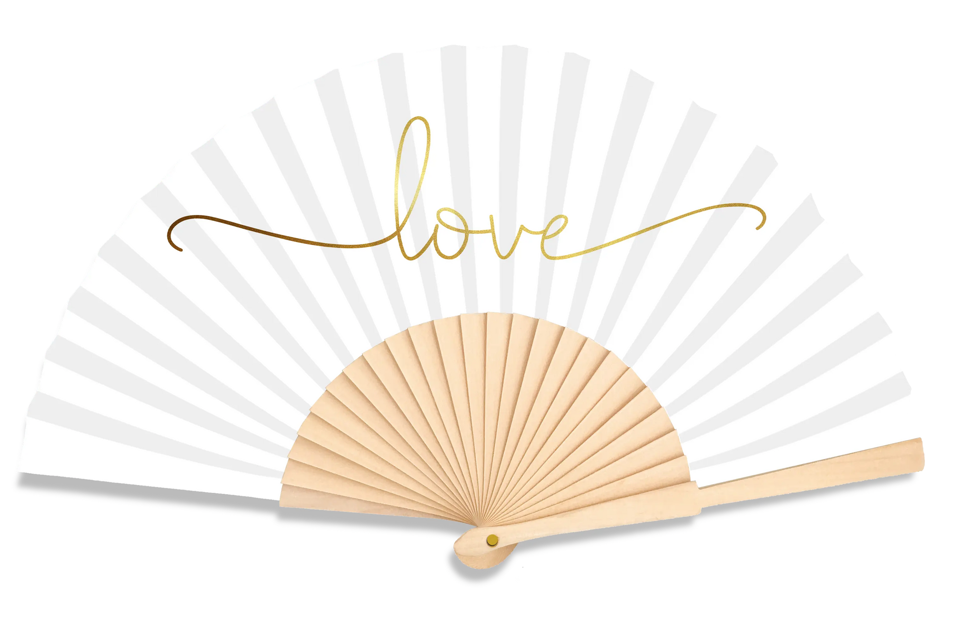 Perfekt für Sommerhochzeiten. Unser Liebes-Fan hat einen goldenen Aufdruck auf einem strahlend weißen Hintergrund.