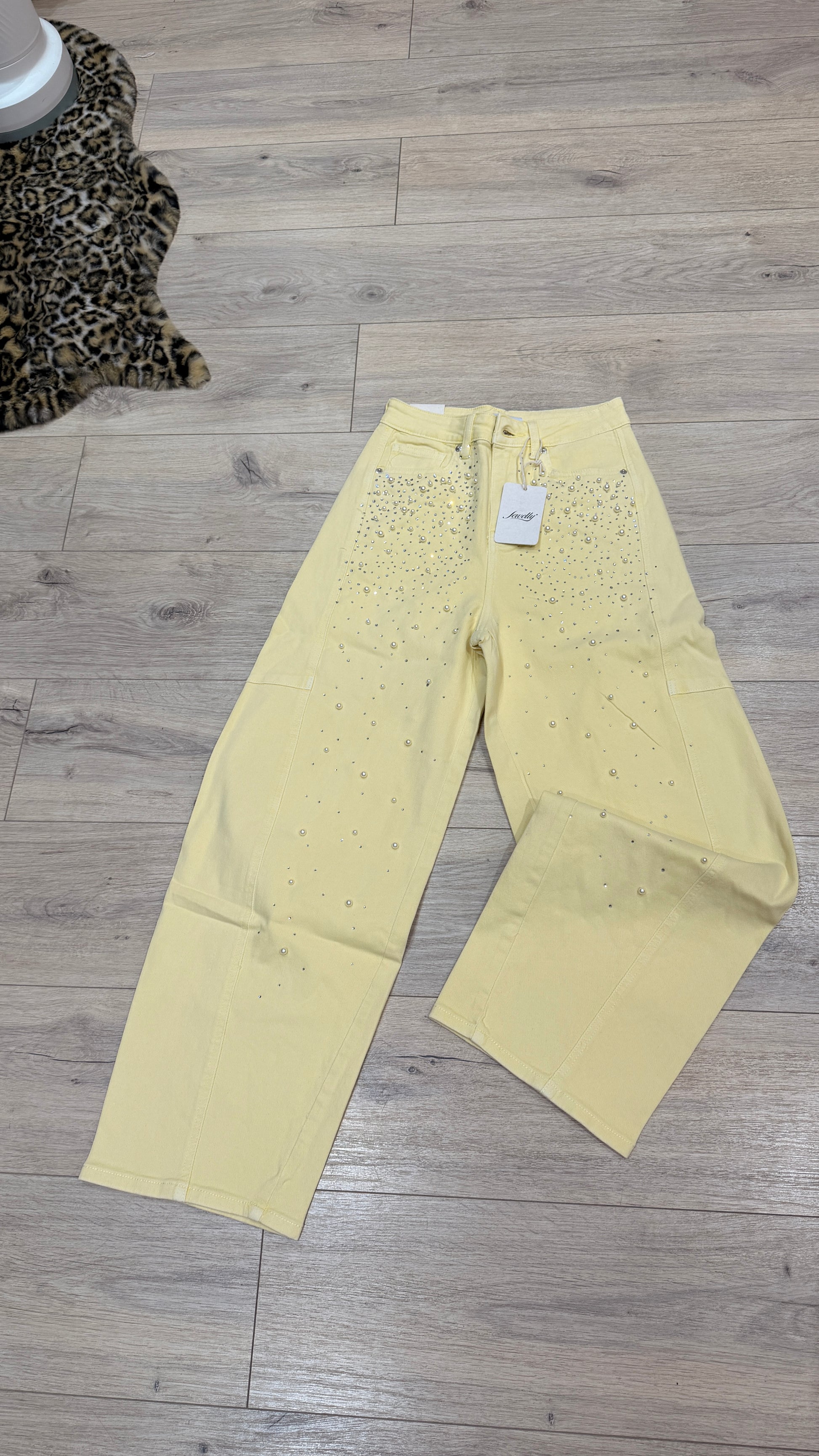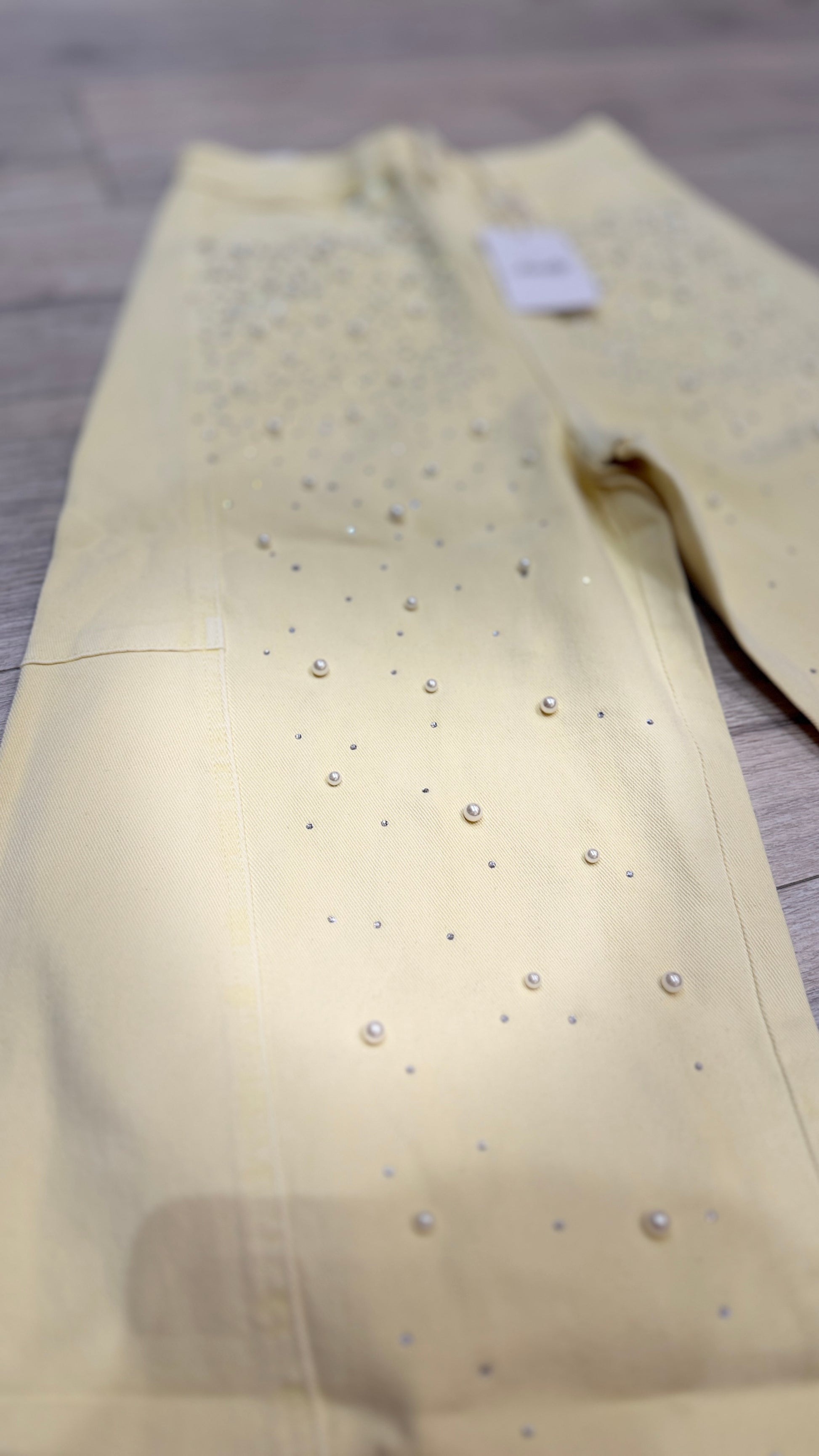 In Rose und Buttergelb mit Perlen und Strass Steinchen