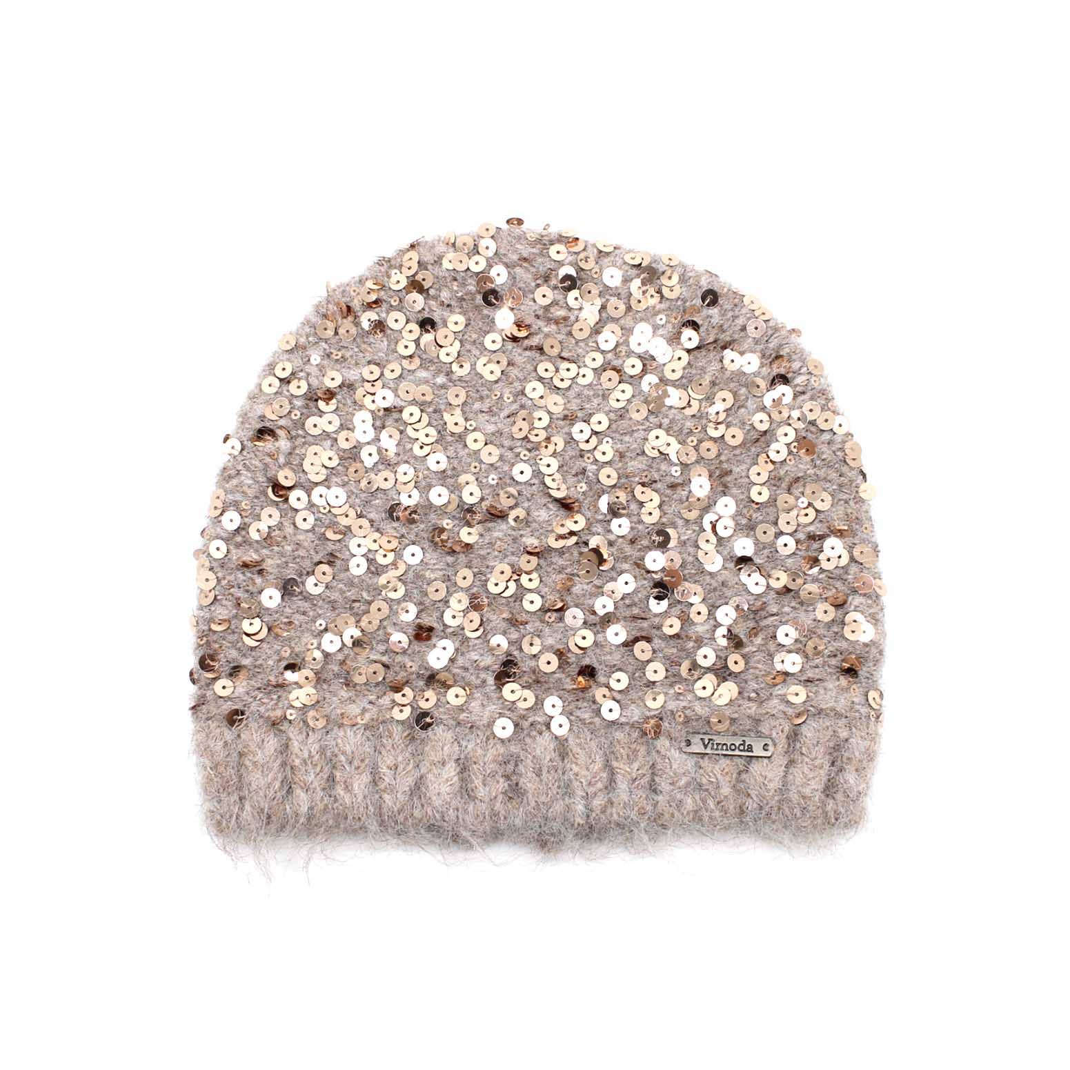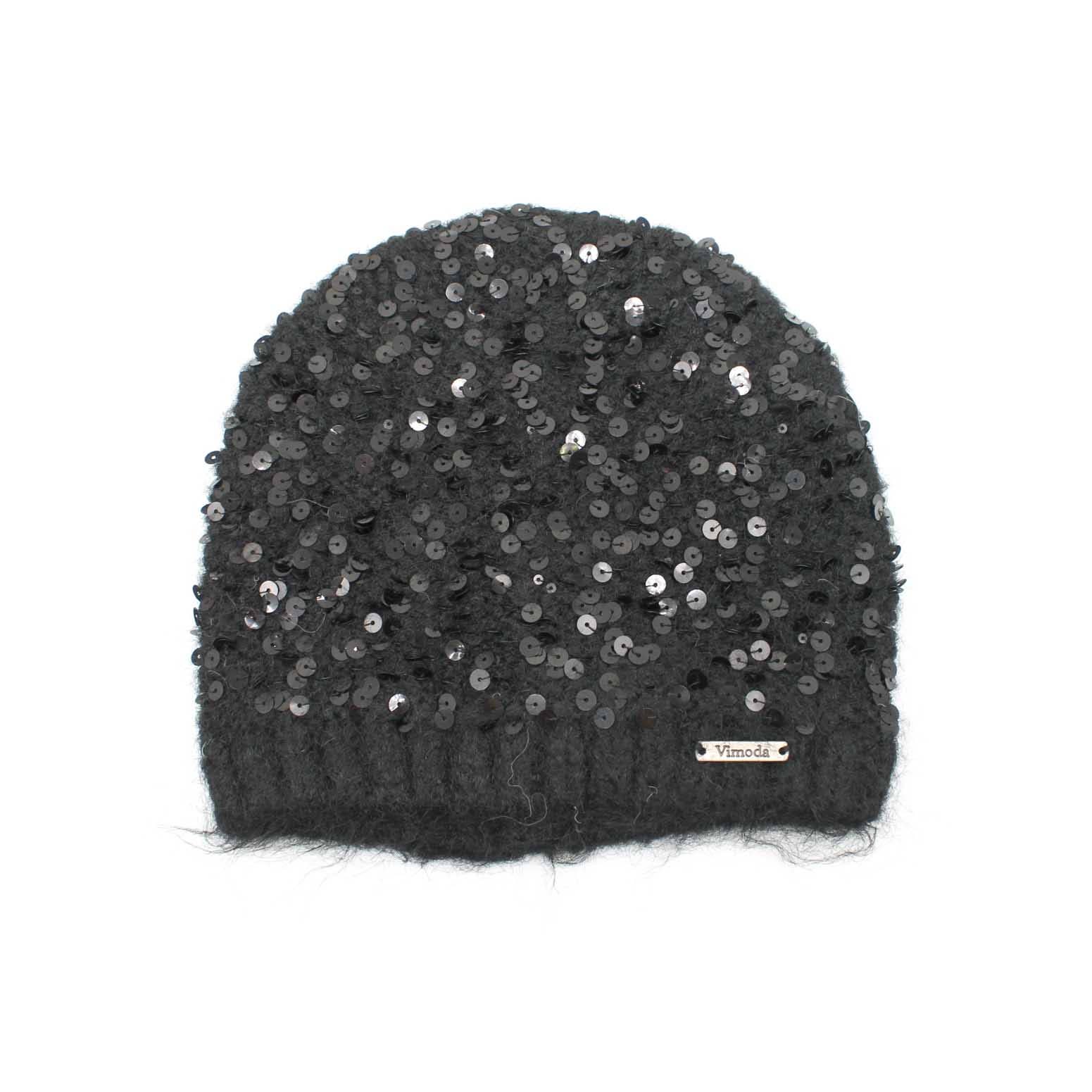 MÜTZE Strickmütze mit Pailletten: SCHWARZ