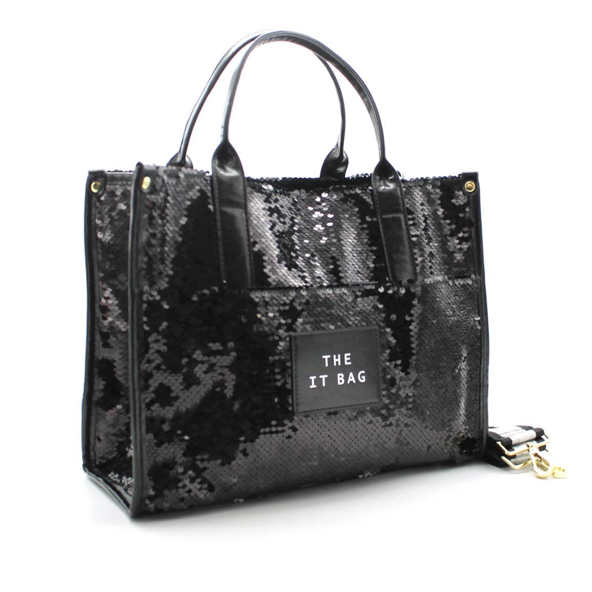 SEQUINS ROSLIN Wendehandtasche mit Glitzer: Schwarz