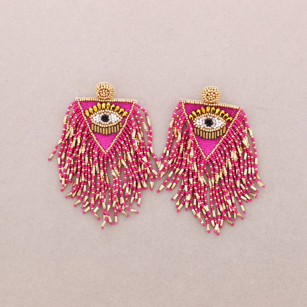 Türkisches Auge Quastenohrringe Perlen: Blau