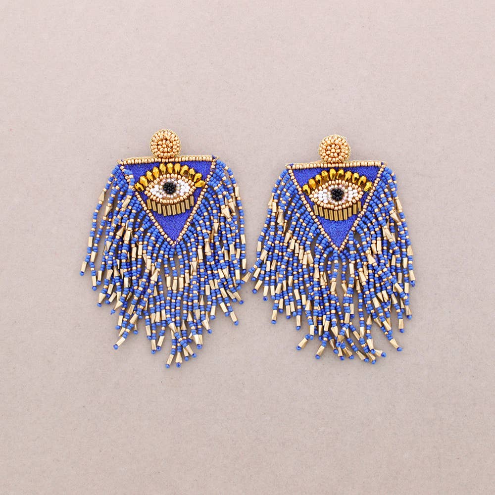 Türkisches Auge Quastenohrringe Perlen: Fuchsie